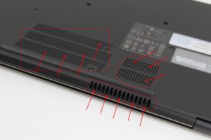 - Ora dovrete smontate il fondo del portatile, svitando tutte le piccole viti, fino a rimuoverlo e quindi accedere alle ventole interne. Se non l’avete mai fatto, potete seguire le guide on-line che potete trovare cercando in base al vostro modello: ad esempio qui i risultati di ricerca per smontare il mio Fujitsh NH 532.